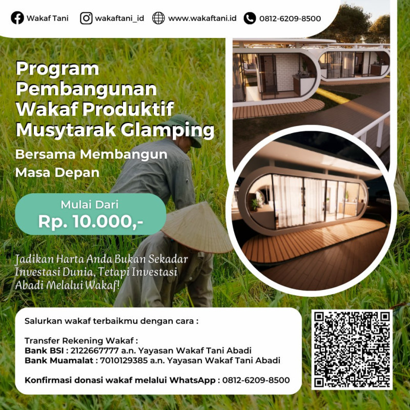 Program ini dirancang untuk membangun 3 unit glamping di kawasan strategis Miracle Park Bromo, yang berada di Jalur Wisata Internasional Gunung Bromo dengan menggunakan skema Wakaf Produktif Musytarak Permanen. Dengan total anggaran sebesar Rp 525.000.000,-, setiap kontribusi Anda akan menjadi bagian dari amal jariyah yang terus mengalir manfaatnya.